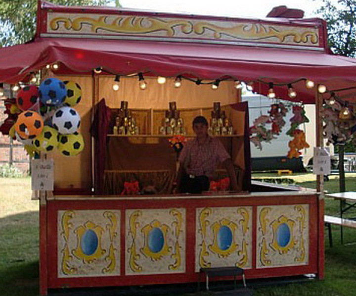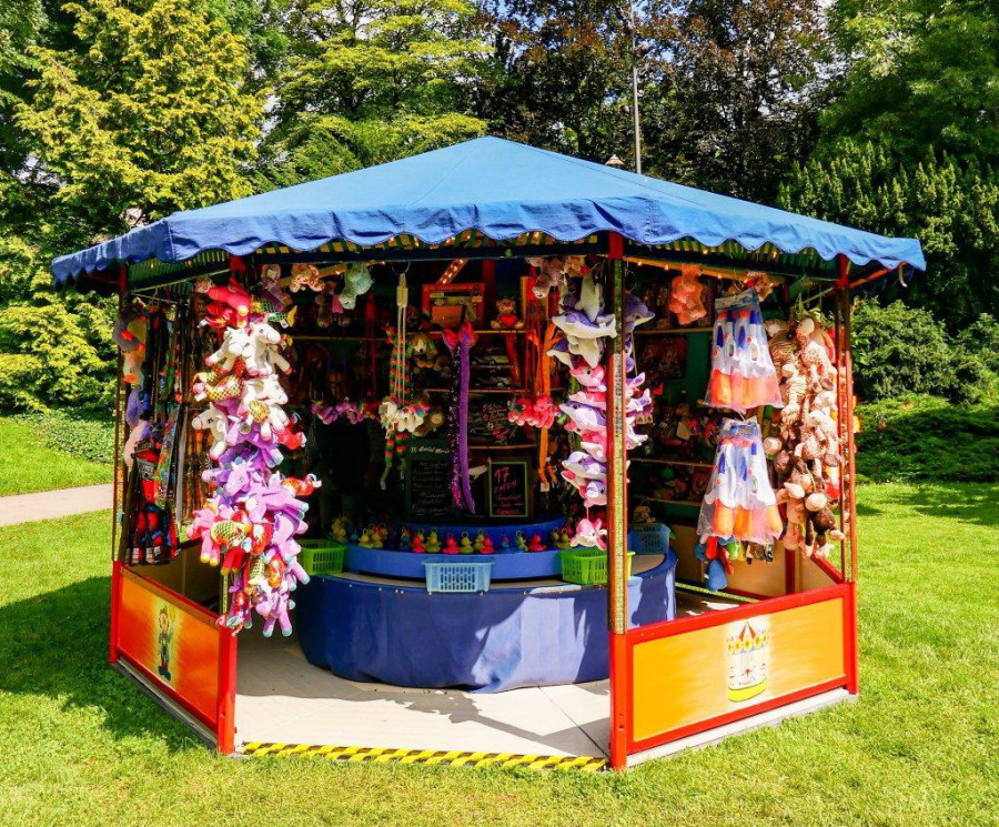 Der nostalgische Spielpavillon lädt Groß und Klein zum spaßigen Entenangeln oder zum treffsicheren Ringwerfen ein.